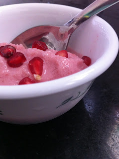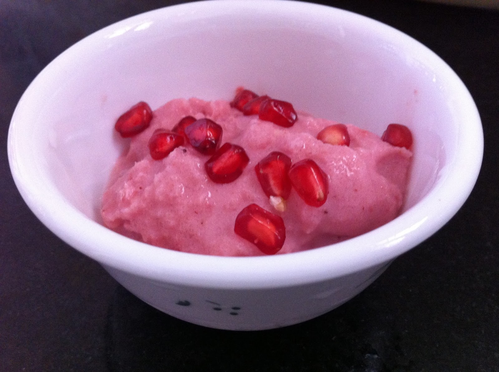 Once you have your yogurt ready, put all the ingredients in a blender except the dry fruits and blend it until smooth. when I saw the ripe strawberries at the super market I just could not resist, so I am using strawberries as base and pomegranate seeds for garnishing today. Once the mixture is blended taste for the sweetness. Once the yogurt is frozen the sweetness seems to be reduced so always use some extra honey even if you feel the yogurt is sweet enough for you at the room temperature.